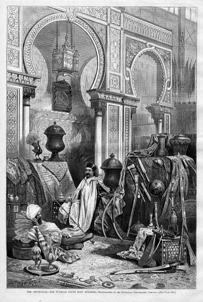 - The Centennial–The Tunisian Court, Main Building, World’s Fair, Philadelphia, published in Harper’s Weekly, November 1876, Public Domain. In article