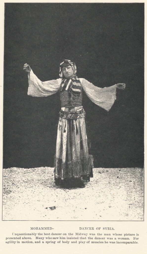 In references to belly dancing of the past, we often hear about the notoriety created by the women at the “Street of Cairo” in the Chicago World’s Fair in 1893. I was surprised and delighted to learn about Muhammed, a male dancer from Syria who was reportedly an excellent dancer who was often mistaken for a woman.