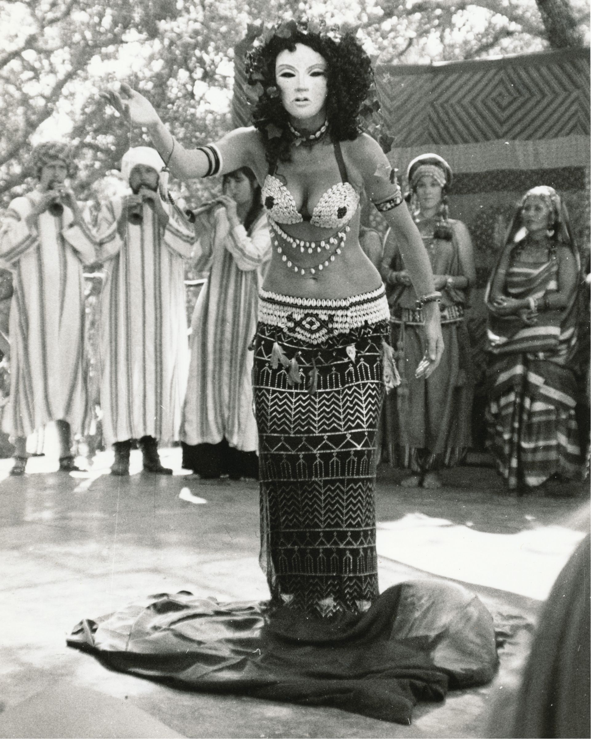 An extension of the overlap between women’s liberation and belly dance is the adoption of belly dance as goddess worship and as a means to connect with the ancient “divine feminine.” Many dancers have linked belly dancing and giving birth, claiming that the pelvic movements of the dance aid in and resemble the movements demanded of the body in delivery.¹¹ It is difficult to make such a link, as today hardly any performer of Oriental dance in the Middle East would claim that what a dancer presents on stage is related to childbirth. However, dancer Morocco observed a birth ritual in Casablanca in which the delivering mother did use abdominal movements similar to those used in Oriental dance.¹²