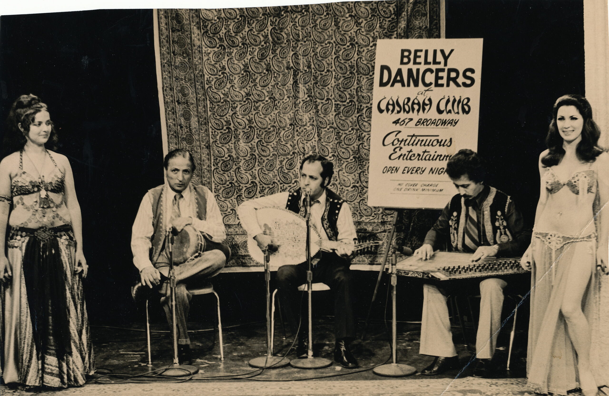The era of the Middle Eastern nightclub in the United States stretched from the early 1950s to the early 1970s, when immigrants from the region opened restaurants for their own communities, and Americans interested in exotic food and entertainment joined them. Musicians and dancers from all around the Middle East exchanged musical and movement styles in these venues, creating a hybrid style that is now considered uniquely American. At the height of their popularity, dancers and musicians performed five to six nights a week working into the wee hours of the morning.