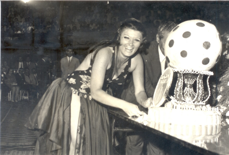 Egyptian belly dancer and actress Nagwa Fouad during Esperance Sportive de Tunis 60th anniversary celebration in 1979, Public Domain, https://commons.wikimedia.org/wiki/File:Najoua_Foued_Esperance.png.